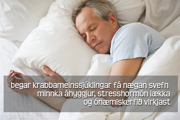 Þegar krabbameinssjúklingar fá nægan svefn minnka áhyggjur hjá þeim, stresshormón lækka og ónæmiskerfið virkjast.